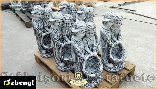 Statuetă copii cu coșuleț, gri patinat, model S7.