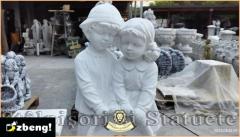 Statuetă copii cu coșuleț, alb marmorat, model S7.